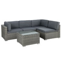 Driffield 4-Seater Furniture Wicker Table Chairs 5-Piece Outdoor Sofa - Grey