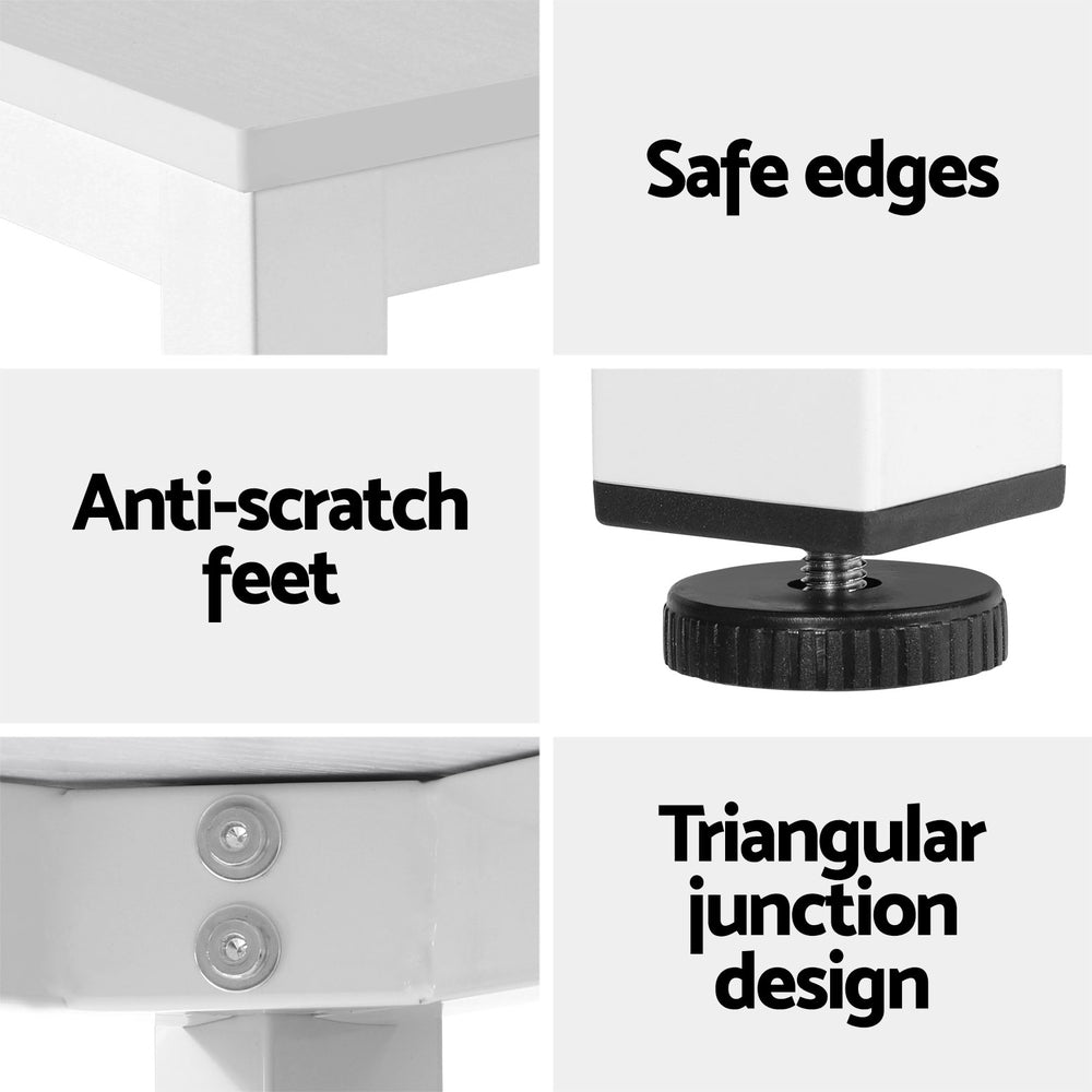 The wide desktop provides ample space for your monitors, keyboards, and all your office essentials. While offering generous surface area, the 15mm thick particle board desktop maintains a sleek profile. The sturdy metal frame ensures stability, while anti-scratch feet protect your floor from damage.