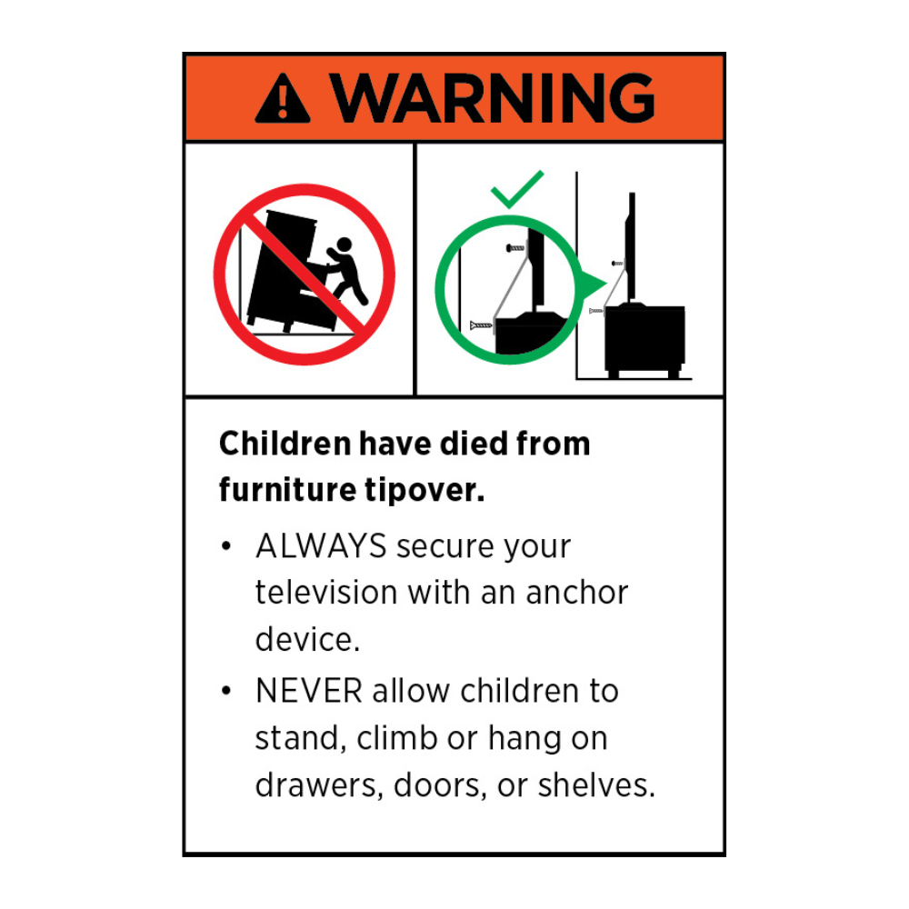 - Never allow children to stand, climb or hang on drawers, doors, or shelves