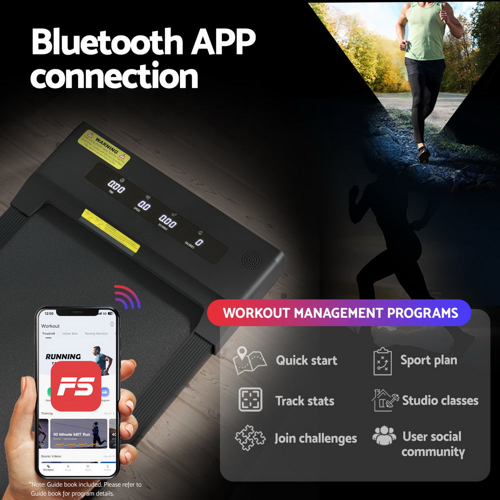 The 400mm non-slip running belt uses an enhanced shock control system to help reduce the risk of joint injury, making the walking pad suitable for adults and seniors. When all the hard work is done, easily fold the compact walking pad and store away. Other great features include smooth wheels for easy mobility and Bluetooth speakers for entertainment while exercising.