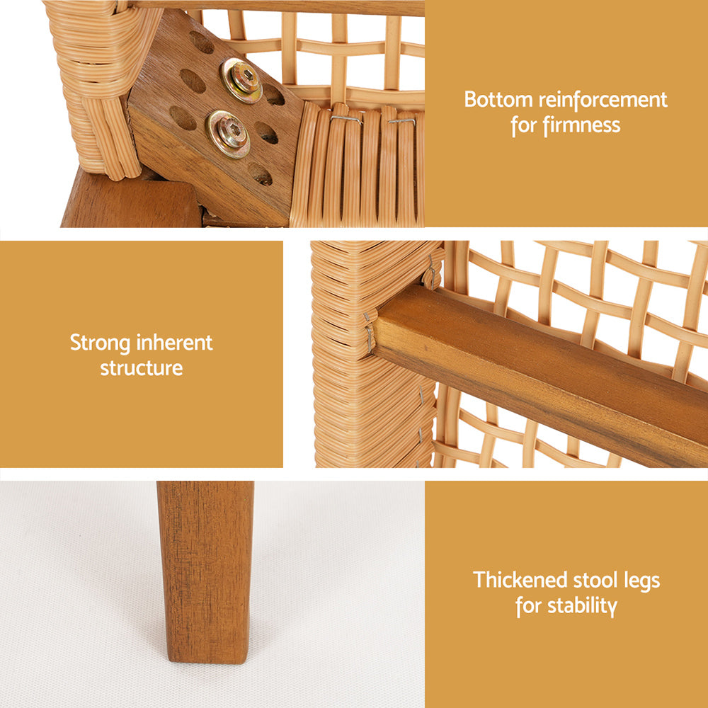 The chair is strong, sturdy and weather resistant, so you know it will be there come rain or shine. The PE rattan seat keeps the bench well-ventilated and is simple to clean. With a reinforced bottom and thickened base legs, the bench has a weight capacity of 220kg.