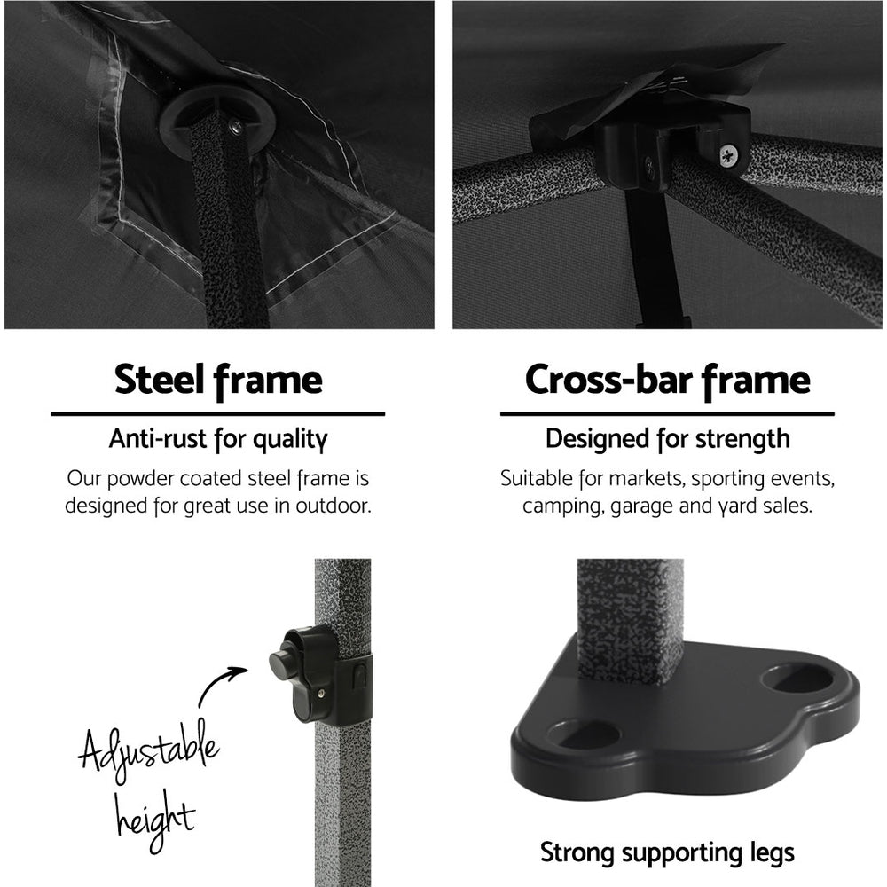The gazebo has 3 adjustable height levels to suit different height needs. It is ideal for markets, sporting events, camping, garage and yard sales, school events, trade shows and many more.