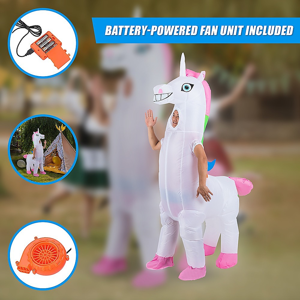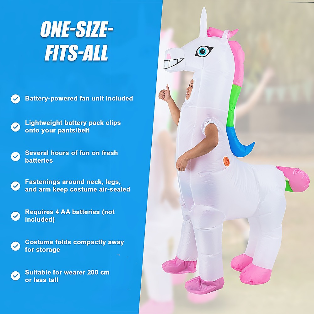 Stand out from the crowd with our Giant Unicorn Design Inflatable Fan-Operated Costume. The size of your costume will be impressive, but your effort in hauling it around will not be.
