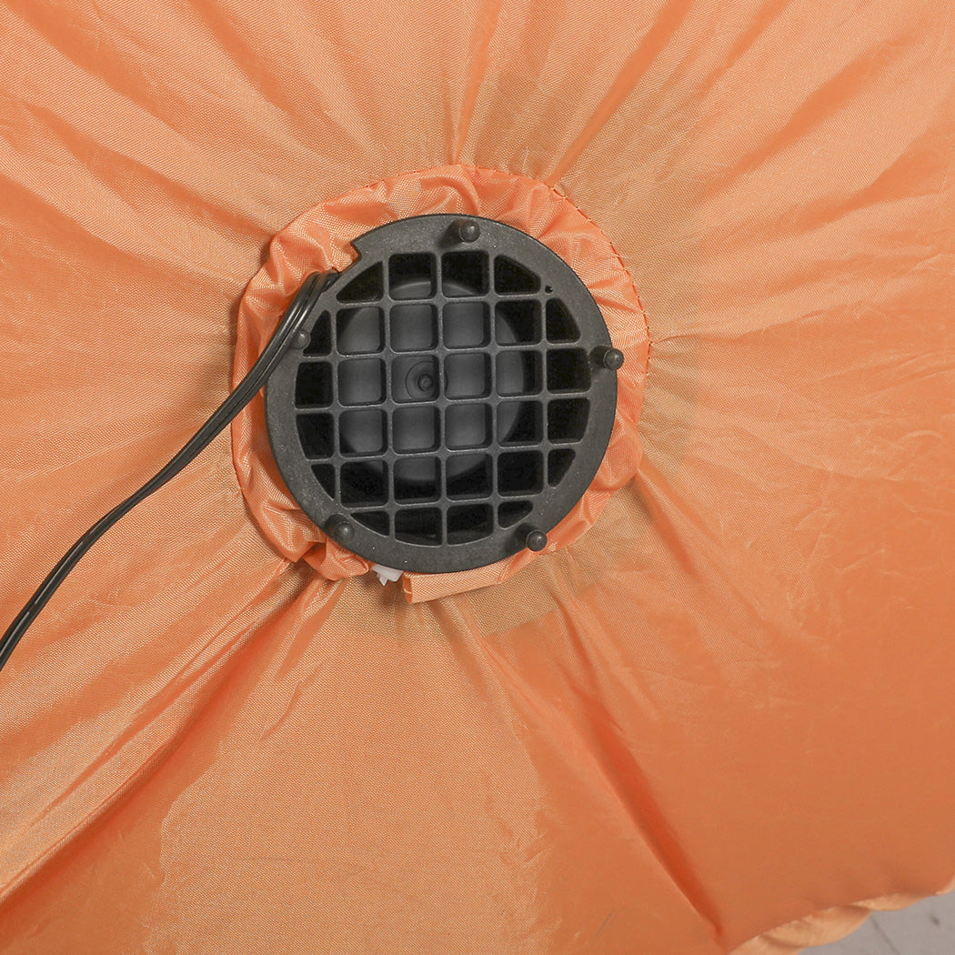Reinforced with widened and thickened tethers, it's built to withstand compression and extend its lifespan. Straight-line stitching prevents seam leakage, enhancing both its appeal and durability. The base is secured with water bags to prevent tipping, while an internal fan ensures quick inflation for a realistic appearance.