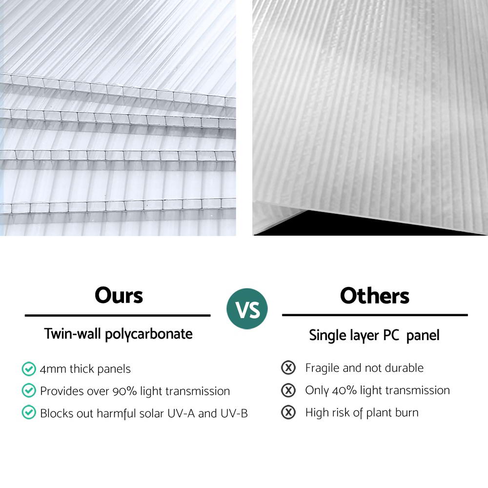 With a spacious volume of 13.56m, it features UV-resistant twin-wall polycarbonate panels for optimal light transmission.