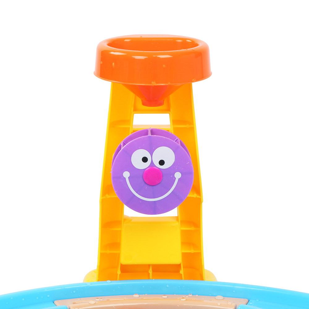 On top of that, the play set is made of eco-friendly and non-toxic plastics with smooth and round edges that guarantee freedom of play in every way. Naturally, it's also great outdoor fun for kids three years and older as they immerse themselves in a world of creative imagination: building sand castles, steering the trains and letting the boats down the slide. The spinning water wheel and movable sand bucket add an extra dimension to play while other delightful pieces provide more fun under the sun. Or, if you prefer, under the shade with the detachable and adjustable height umbrella.