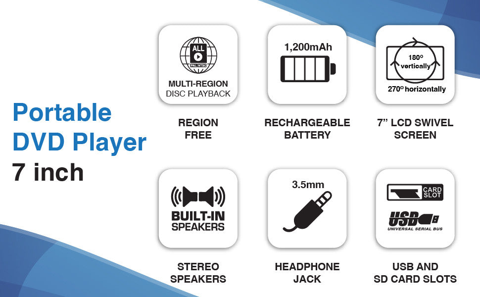 With a high-resolution 7" LCD screen and versatile playback options, this DVD player is perfect for car trips, home use, or anywhere you want to enjoy your favourite media.