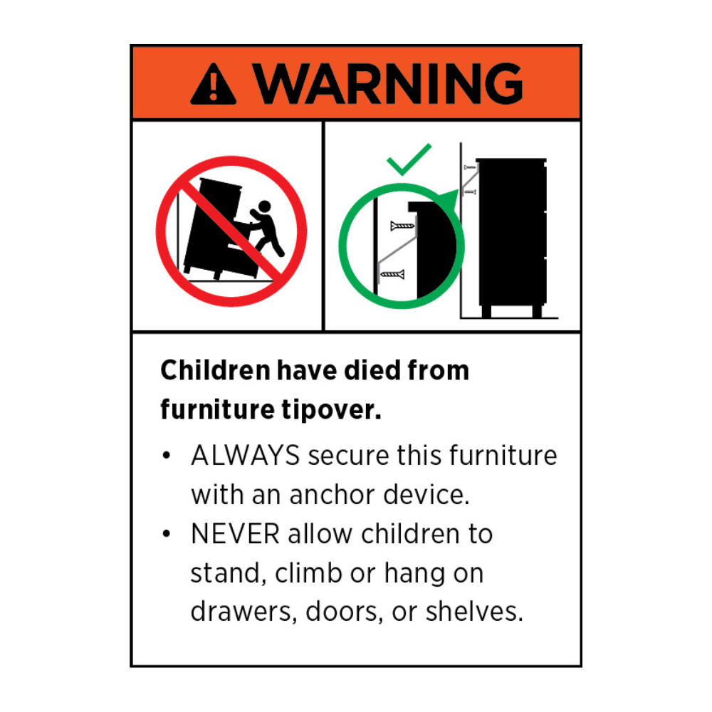 - Never allow children to stand, climb or hang on drawers, doors, or shelves