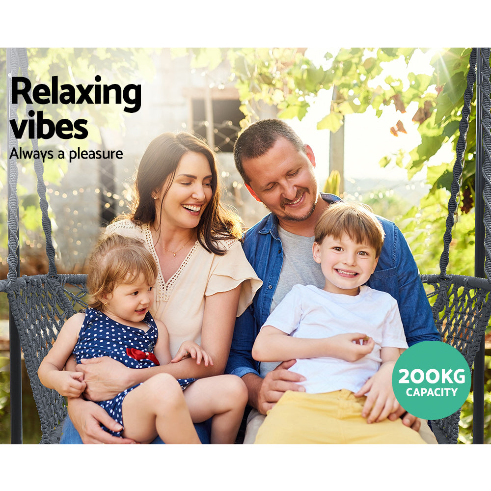Lazy days and chill out moments. Somehow, they seemed to go better in our beautifully crafted handmade Hammock Chair. Designed to cup you comfortably, our hammock chair is extremely relaxing to sit on with ample support for your back and arms. Built of a sturdy structure wrapped in a mix of polyester and cotton fabric, and adorned with lovely handcrafted tassels, our 2-seater hammock chair has all the right vibes of days spent enjoying your favourite past times suspended in mid-air with nary a care in the world. String it over a tree, mount it at a veranda or install it inside the house, the hammock chair hangs well in any place for very unique decor.