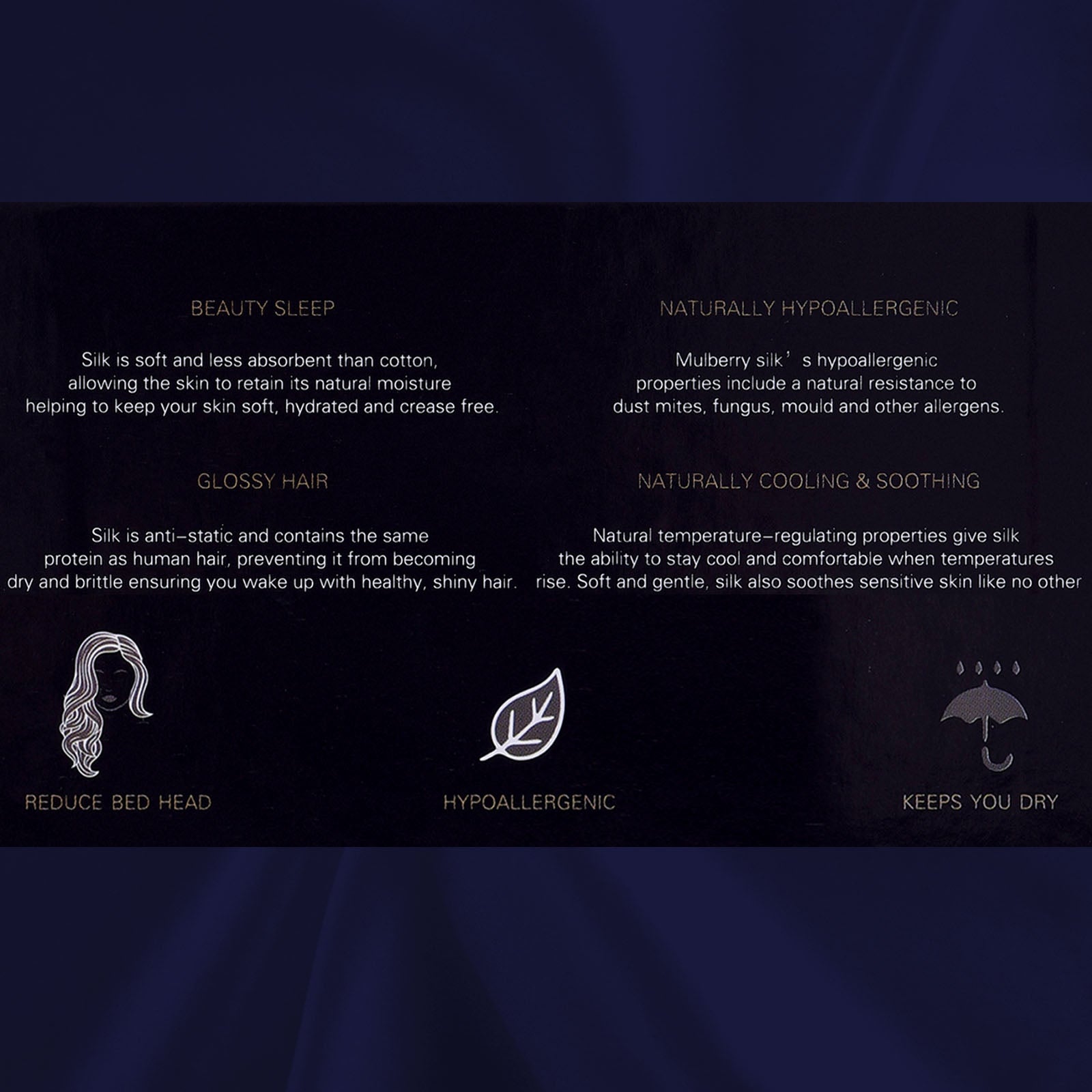 Pure 100% Mulberry Silk contains 18 essential amino acids which are the building blocks of protein in the skin and are known for its effectiveness in both the prevention of ageing, and as a natural skin-moisturizing agent.